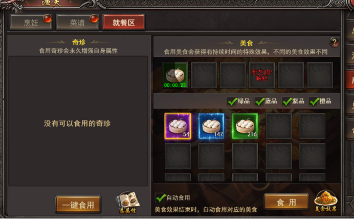 b. 勾选自动食用功能后,在美食buff效果结束后,会自动食用对应美食;