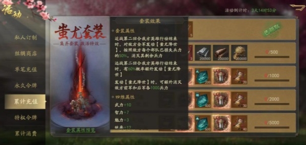 通过累冲活动,玩家可以在短时间内集齐整套蚩尤装备,快速提升战斗力。
