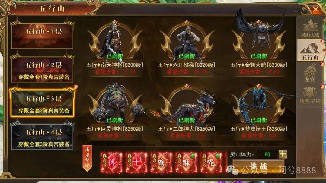 五行山的入口位于 **灵山大陆-五行山**,只有当服务器开服满 40 天后,玩家才能解锁这一副本。进入五行山前,玩家需要做好充分准备,因为这里的 BOSS 拥有强大的 **紧箍之力伤害**,能够对玩家造成百分比掉血。这种伤害无视常规防御,只有具备足够的紧箍抗性,才能有效抵抗这种伤害。