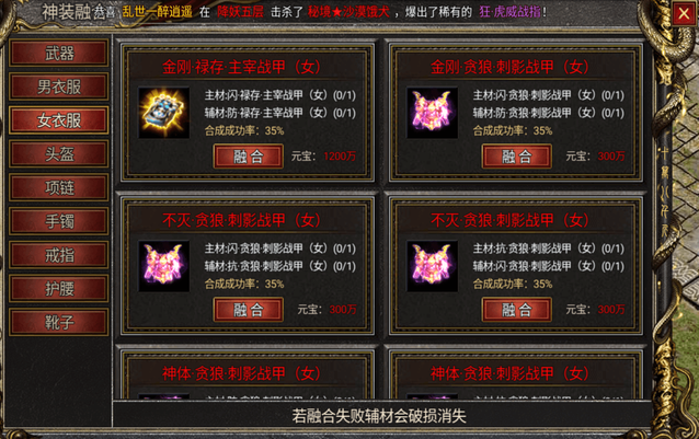 刷到的7 转和 8 转装备别轻易分解,建议全部存起来,用于神装融合,融合9转装备,因为9转及以上装备拥有多条元素属性。
