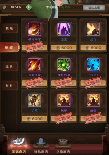 每天上线后,集市购物是必不可少的。集市里的所有紫色技能每天都要买空,无论是给副将还是主将,都非常有用。