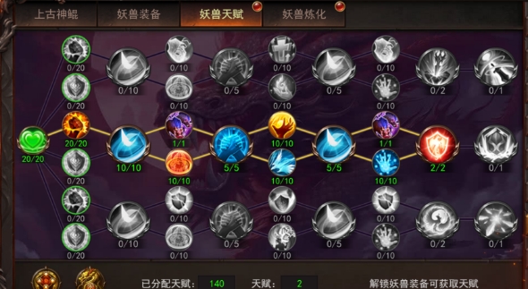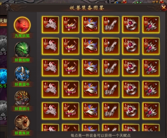 每当玩家点亮一个妖兽装备时,即可获得1点天赋点。妖兽装备是游戏中提升角色实力的重要道具,通过点亮装备,不仅能增强角色属性,还能积累天赋点。
