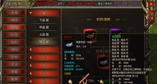 开区前7天的装备首爆活动能获取大量灵符,前期元宝灵符主要可以用来i提升法器、四象仙宝和大道乾坤。同时极品限购里的生肖也是可以看一看的,生肖能提升的攻击力和爆率也是很可观的!