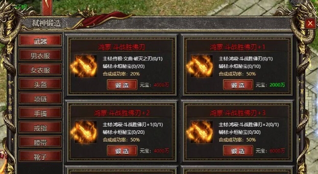 成功率:锻造成功率分为20%和50%两档,玩家可以根据自身需求选择不同的成功率。
