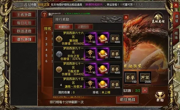 每个赛季的最后一天22点至24点是休战时间。在22:30时,系统会根据玩家的伤害排名发放丰厚的奖励,包括元初金丹和大量荣誉值。此外,每个赛季结算时,排名前50名的玩家将获得炫酷的专属排名勋章,该勋章会显示在聊天频道中。