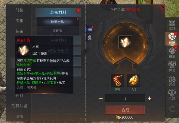 熔铸功能:当材料不足时,可以通过“熔铸”功能将低级淬炼石转化为高级材料,转化率为3:1。