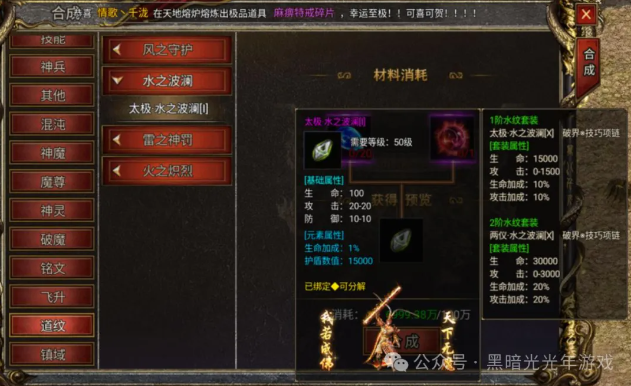 技巧项链不仅能为玩家角色提供生命、攻击、防御等基础属性加成,还具备两个重要的作用。一方面,在合成神装以及对神装进行进阶锻造时,佩戴技巧项链能降低20%的元宝消耗,帮大家省下大量元宝;另一方面,使用技能后,项链能让技能熟练度提升10被,快速提升技能等级,提升战力。
