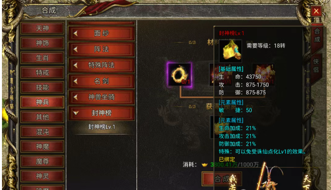 在白蛇传奇有种封神榜除了能增加生命、攻击和防御的基础属性,还能够增加敏捷元素属性;同时还能够激活免受诛仙点化Lv1的特殊效果。