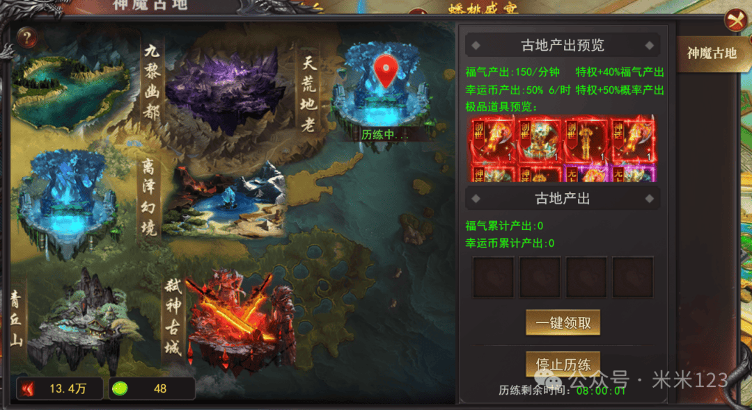 4.历练的道具最多累计8个小时,达到上限后不在获取奖励