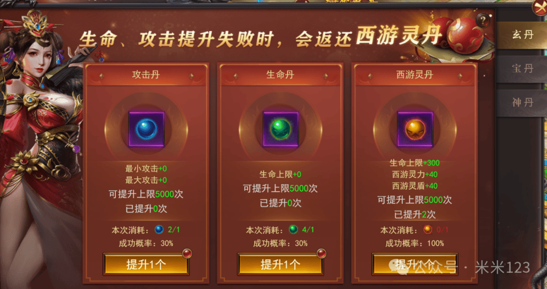 (1)低级丹药使用有成功概率,失败后必定获得西游属性丹药