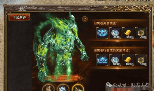 当游戏开服满16天后,跨服斗帝遗迹活动将震撼开启。玩家可以通过点击界面上的“远古禁地”图标,进入斗帝遗迹界面,查看BOSS的详细信息并参与挑战。