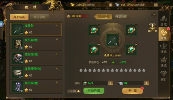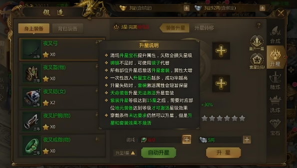 在升星前,可以使用一星装备进行垫手,通过一星装备的升星来感受当前的成功率。当一星装备升星成功且未碎裂时,可以尝试冲击更高星级的装备。