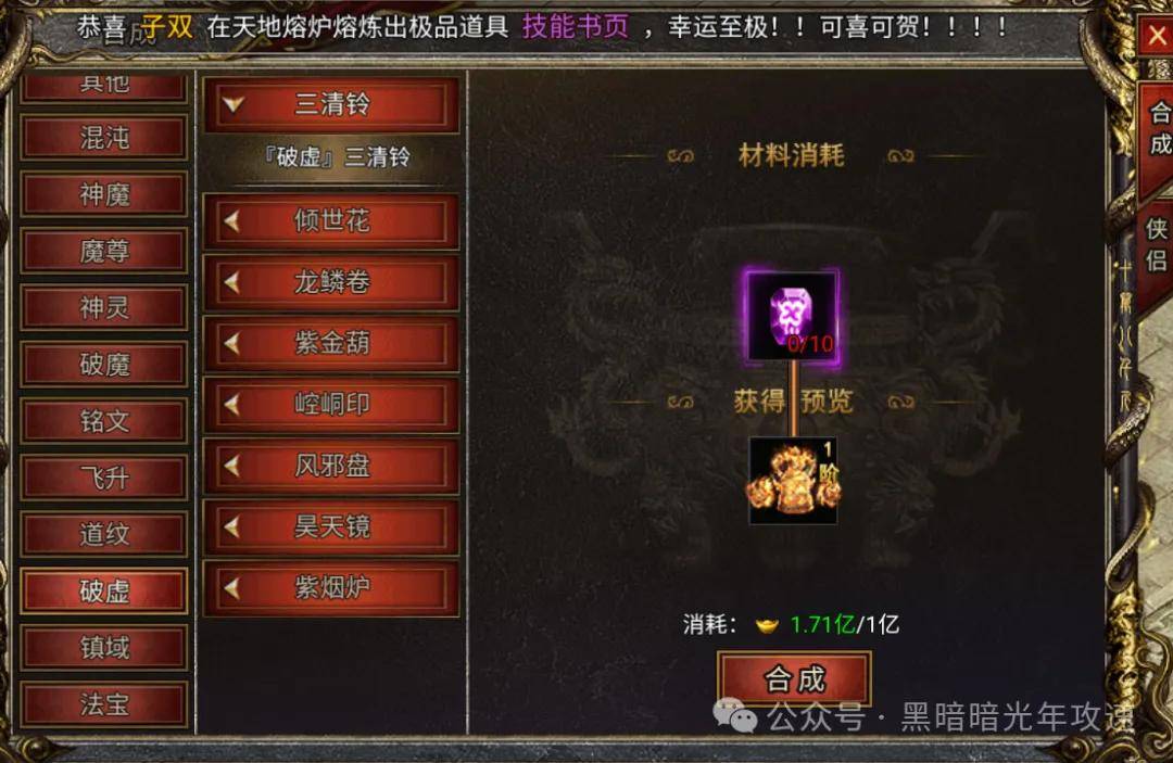 在黑暗光年游戏中破虚装备可以通过棘林吟咏专属副本获取,也可以通过破虚灵晶合成获取。