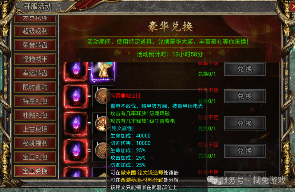 白蛇传奇融合铭文算是前期最好的铭文了,有几率释放两种技能,增加大量的攻击生命防御,一个融合铭文需要20个黑暗宝玉兑换。