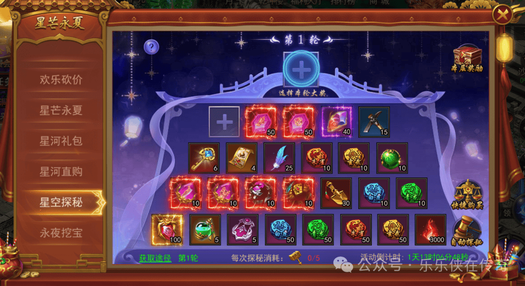 一、活动入口主城→限时活动→星空探秘,每天0点免费重置次数,记得先清空再氪锤。