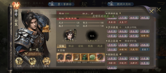 辅助技能:战意,至此孙策技能基本定型。氪金大佬可换枪神等输出技能。
