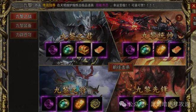 在白蛇传奇游戏中九黎装备可以通过挑战九黎BOSS获得,而挑战九黎BOSS需要进入九黎天区、地区和人区地图,有几率获得九黎核心装备九黎战装碎片、泽纹结晶、核心精华和行会币等一些珍稀奖励,层数挑战越高,掉落的奖励也是越好的。