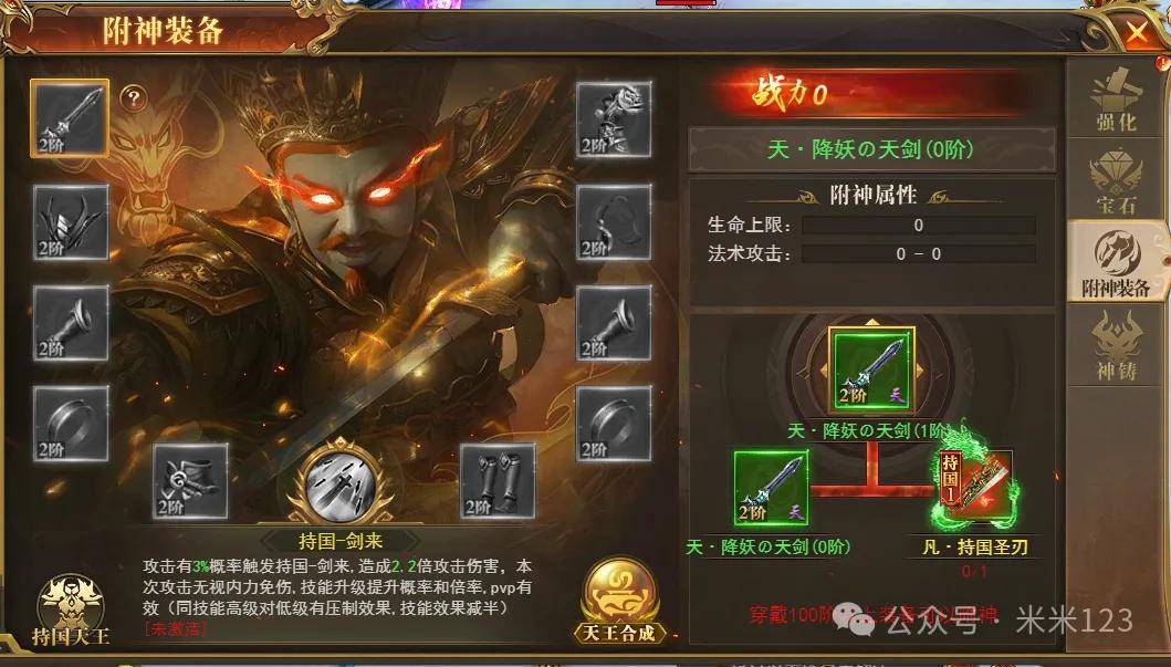 阶数同步提升:在强化基础装备的同时,逐步升级附神装备,避免属性断层。