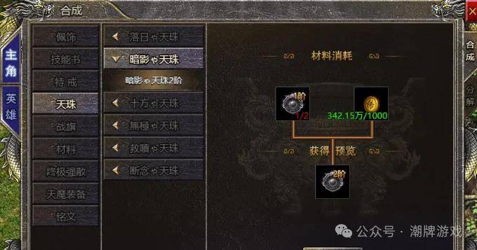 合成方法很简单:收集足够的低阶天珠装备和传奇币,通过游戏内的合成系统,就能将低阶天珠合成为更高阶的天珠装备。每提升一阶,天珠装备提供的属性加成都将大幅提升,让你的角色战力突飞猛进。