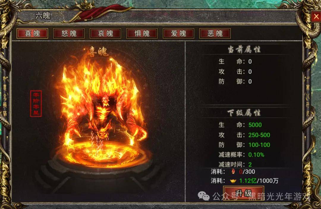 每一魄都可以通过使用指定的材料进行升级,升级后提升玩家攻击、生命、防御、减速概率和减速抵抗等属性。