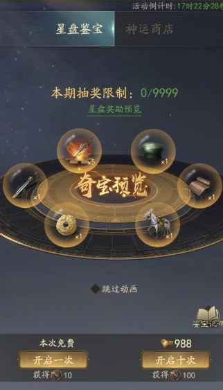 每次抽取都会获得神运币,这是一种非常重要的货币,不要随意使用。