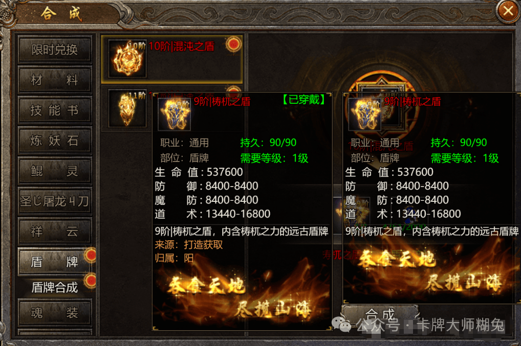 盾牌还能增强防御和魔防属性,让玩家在面对敌人的攻击时更具抵御之力。除此之外,道术属性也能得到相应提升,并且盾牌还能带来伤害减免效果。