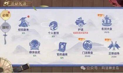 如果以上任务都做完了,可以点击活动,查看每日必做任务以及限时任务,在活动玩法里也能获取大量的经验值以及道具装备!完成活动任务还能够提升活跃度领取奖励。想要快速冲级可以进入经验副本,然后一键体验购买经验加成道具,经验蹭蹭往上涨。