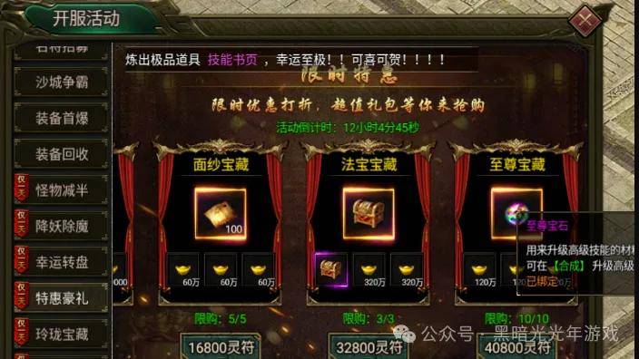 在白蛇传奇游戏中至尊宝石可以通过累计充值天数和商城购买获得,大家可以在活动期间使用灵符去购买了,比在商城中直接购买要便宜很多,但是每次活动只限购10个!