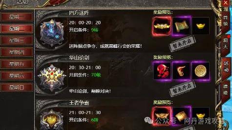 四方迷阵:解谜闯关活动,通关可得大量元宝及资源。