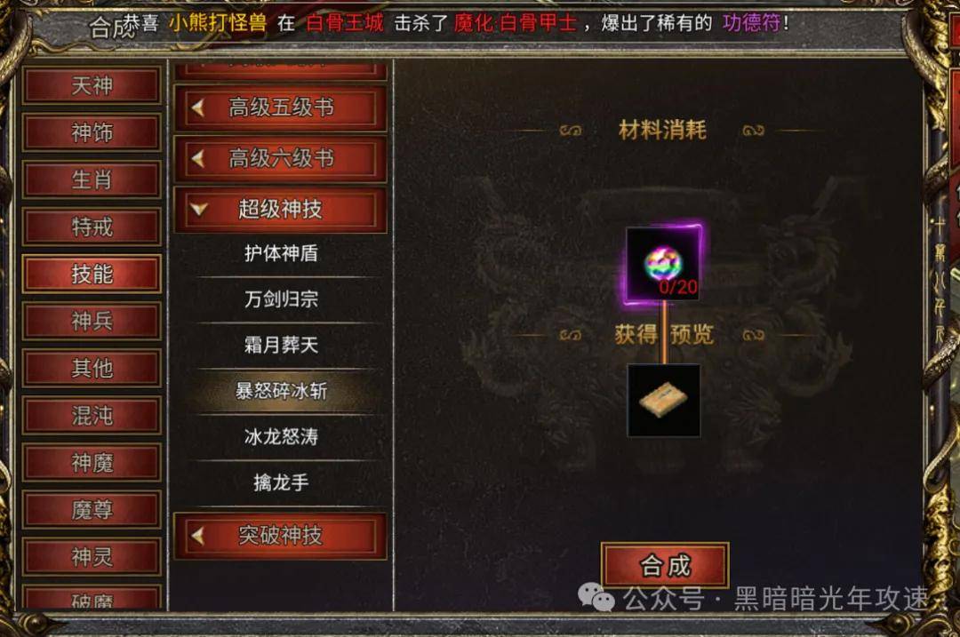 暴怒碎冰斩技能需要用20个至尊宝石合成获取,大家可以在有双倍灵符和至尊宝石活动的时候囤,在小编这里的折扣服玩,当然也是划算很多的。
