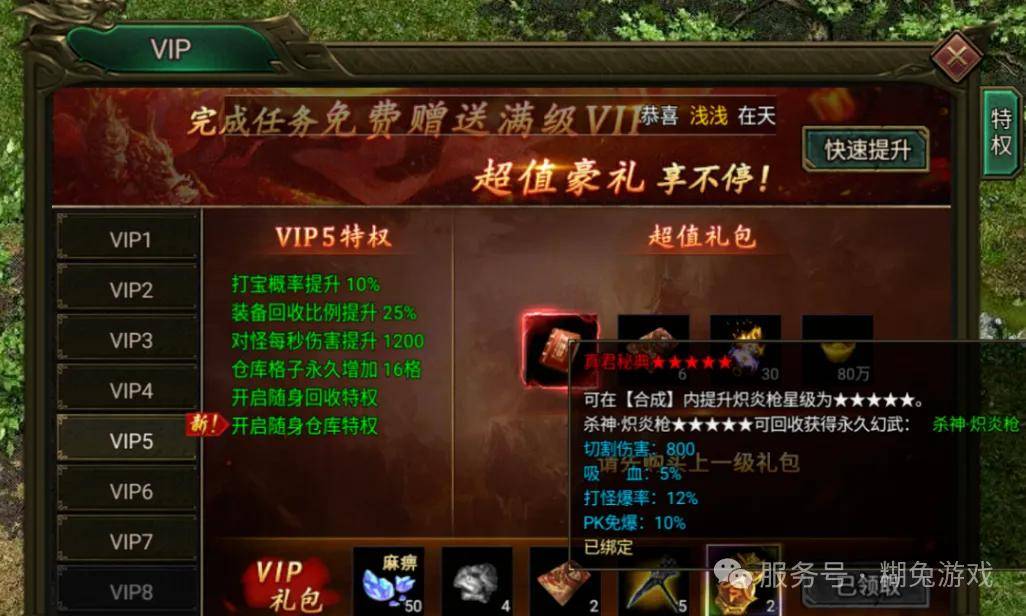 哈喽大家好我是你们的糊兔,今天糊兔给大家带来的是黑暗光年月卡版VIP特权玩法攻略!不朽传奇猎魔无双新手起号怎么刷材料?