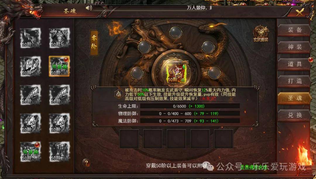 维京传奇折扣包服微变攻速传奇三端互通附魂装备分不同部位,成套可获得不同套装属性和技能(武器、衣服分单独技能套装和剑甲性套装)附魂增加该槽位装备圣魂属性,如附魂戒指(左侧),可增加角色戒指(左侧)的圣魂属性。附魂装备的材料圣装可在开服21天后通过圣兽殿堂中获得或者在合成兑换中换取,装备附魂可提升对应部位附魂属性和套装技能。附魂效果只对50阶以上基础装备生效,且高级装备所激活的效果降为低级装备后套装属性和技能也会同步改变。(换回高级装备后则恢复正常)。