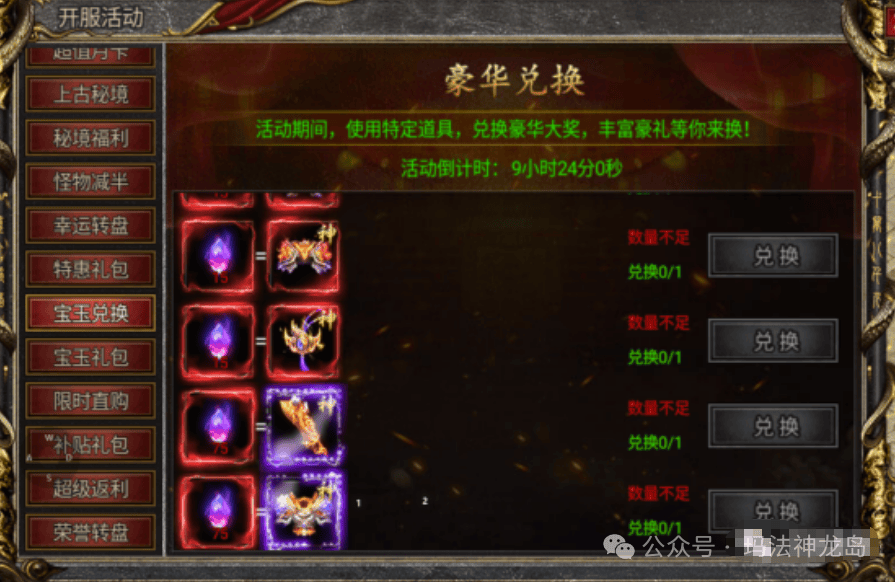 很多新区玩家还是不清楚雷神套的具体消耗,今天给大家介绍一下,雷神10件套,武器和衣服各要75个黑暗宝玉,其他8个部位要15个,一共需要270个黑暗宝玉,首先兑换2个戒指,然后出2个手镯,然后出头和鞋子,然后出腰带和项链,最后出武器和衣服,如果一次性兑换不完,下次活动要从戒指开始重头兑换。