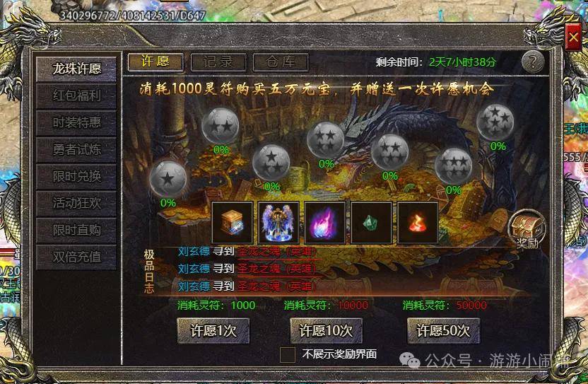 1.龙珠寻宝开放期间可消耗灵符进行许愿