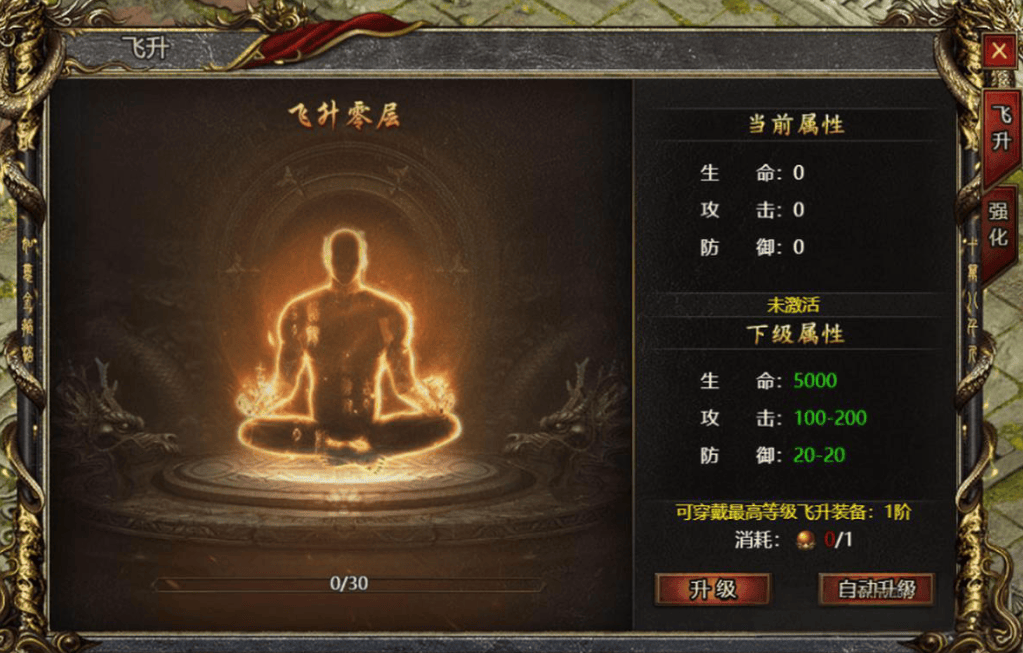 3.飞升大师:可使用修为丹提升飞升等级,强化飞升装备。
