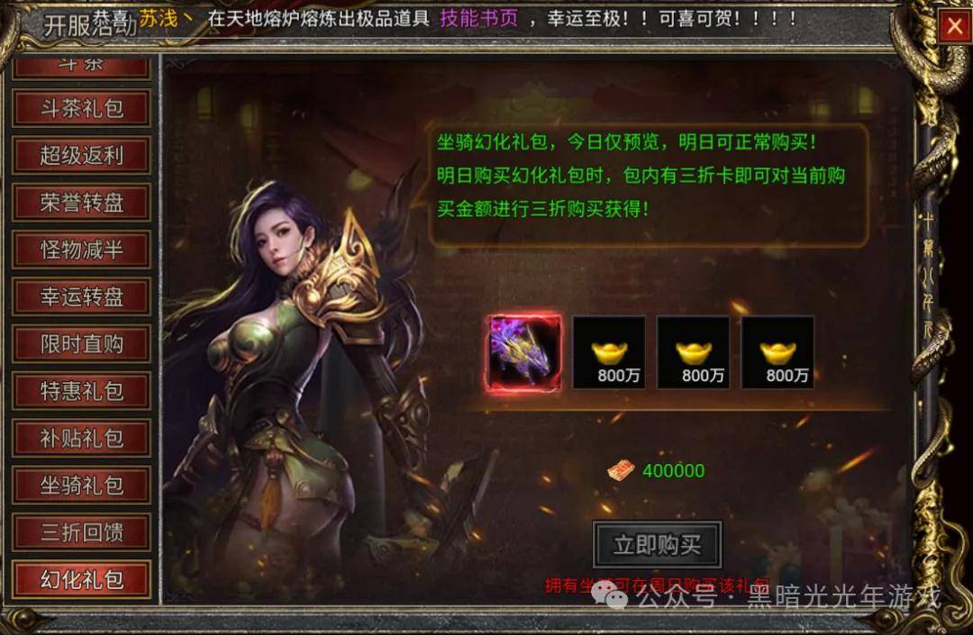 在白蛇传奇坐骑幻化梵天灵狐可通过幻化礼包获取,需40W灵符。