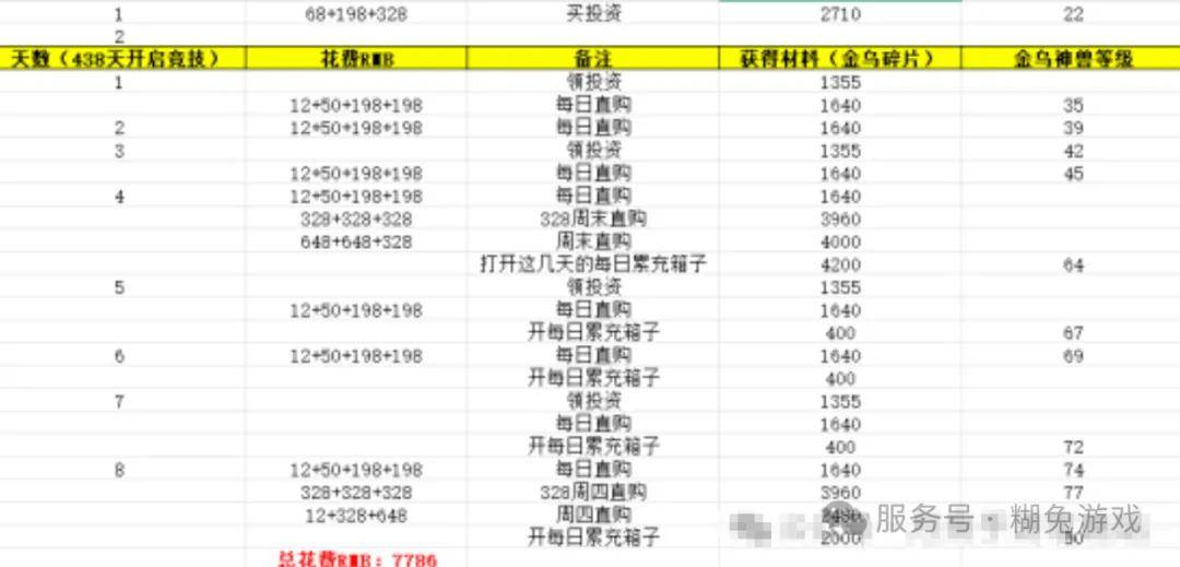 这次的竞技拉到了刚好8天完成,不过还是很便宜,总共需要7000多米,还是没有算周卡月卡材料箱的,都算进去大概7000左右就可以拿下,有折扣3000多就可以,币白泽还便宜,主要就是买每日直购,领每日累充的材料箱子。