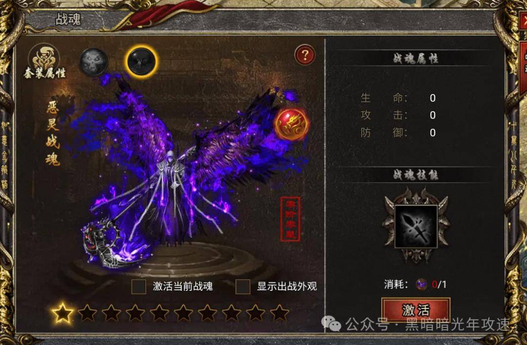 魔气滔天:战魂出战后,玩家攻击时有概率触发,释放魔气环绕敌方,降低目标玩家50%暴击几率和30%暴伤加成,持续5秒。