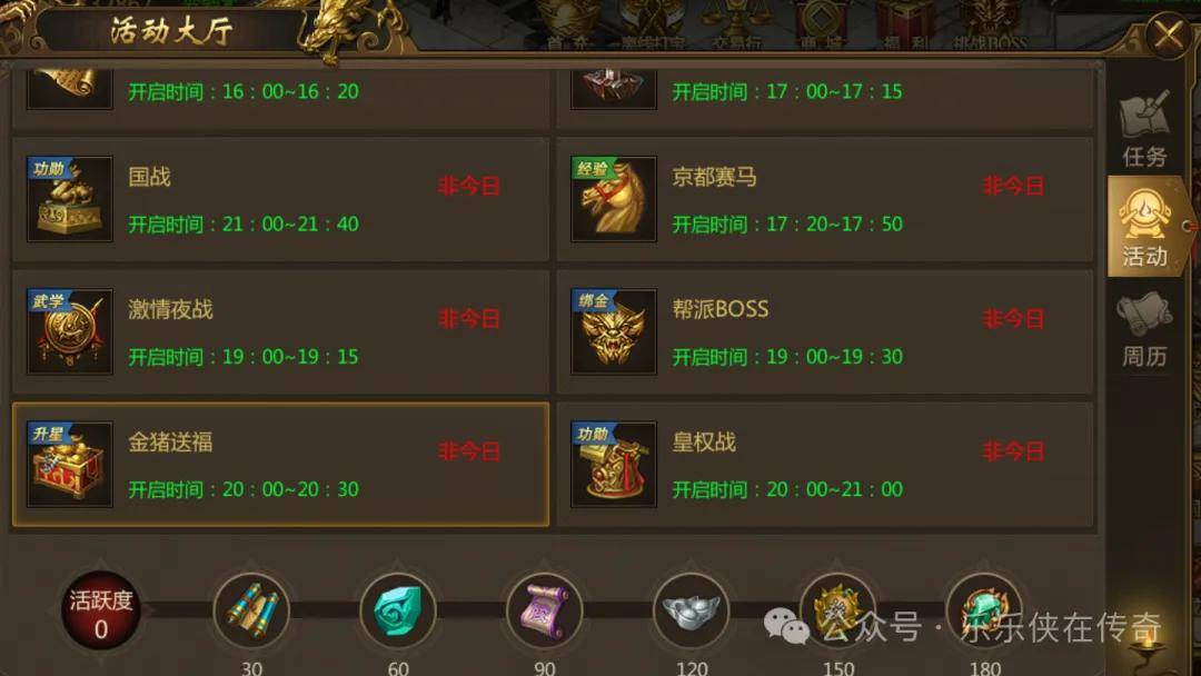征战王权国战手游龙途天下折扣服活动时间:日常20:00-20:30活动等级:62,活动说明:开服第一、二、六天开启;日常周一、二、四、五、日开启。活动时间内系统自动开启,消灭BOSS可获得大量升星石、金子、绑金、绑银奖励。