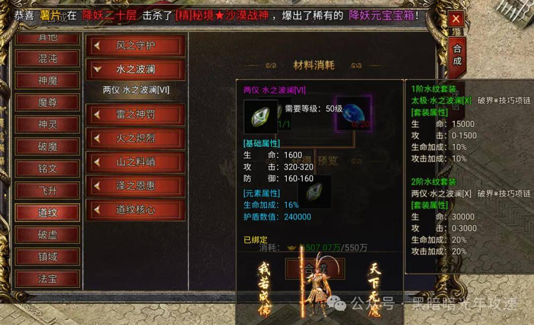 3.道纹套装:它还能和特定的道纹组合,激活额外的套装属性。