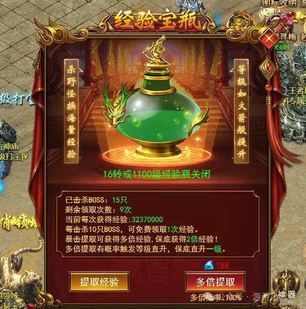 维京传奇经验宝瓶是游戏中的一种道具,可以使用后获得大量经验值。有时候经验宝瓶的奖励中也会包含转生丹。玩家可以通过参加活动或者任务获得经验宝瓶,然后打开它们查看是否有转生丹作为奖励。