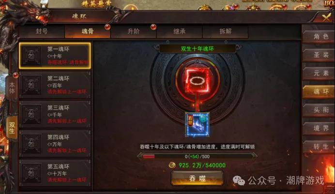 维京传奇折扣包服双生魂环玩家们只需要吞噬对应等级的魂环或者魂骨或者双生经验丹,就能为双生魂环增加进度。当进度达到满值时,再使用特定的道具,就能成功解锁双生魂环了。