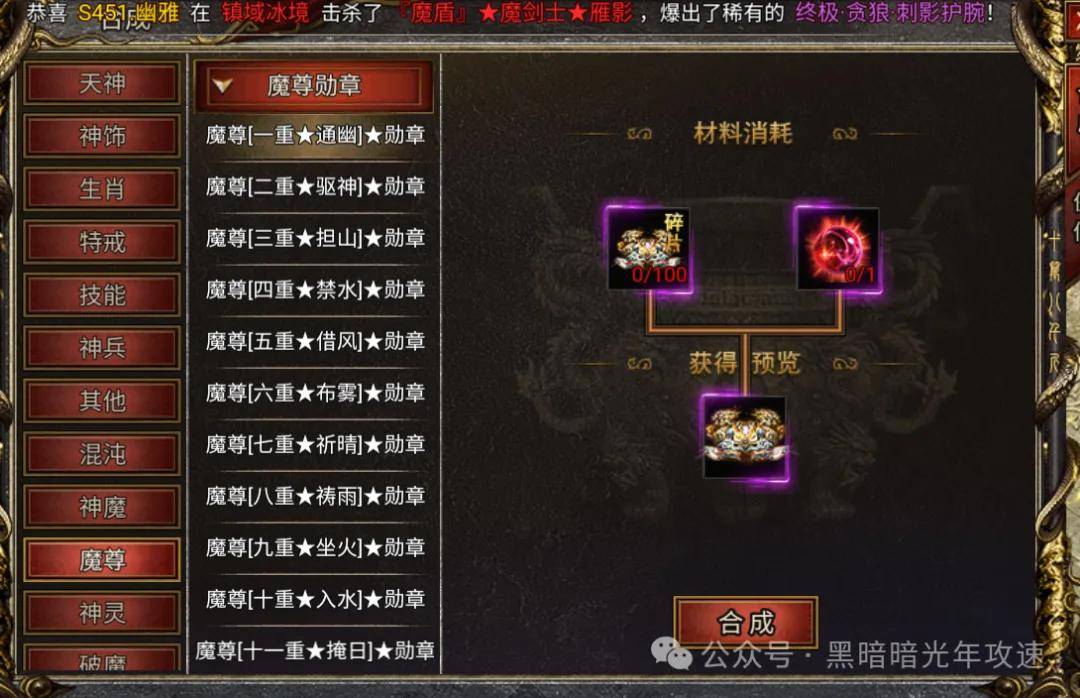 魔尊勋章 & 魔尊斗笠碎片:盯紧 “车迟斗法” 活动。这活动每天给你6次免费挑战机会,碎片就从这里面出。次数别浪费,每天清完,积少成多。