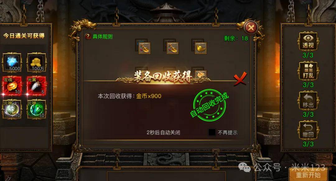 剑影乱武梦回江湖手游折扣渠道传了个世具体规则:游戏中点击亮起的道具即可将道具放入下方卡槽,卡槽中出现三个同样的道具时即可消除这三个道具,下方道具只能在上方没有道具时才可以点击,置暗的道具无法点击。