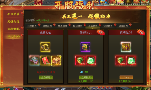 1、【新增】目标助力,配套英雄、宗师、战神,供给更多超值特惠;