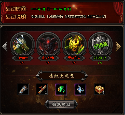 活动期间击杀对应的Boss满足条件即可领取相应的奖励。
