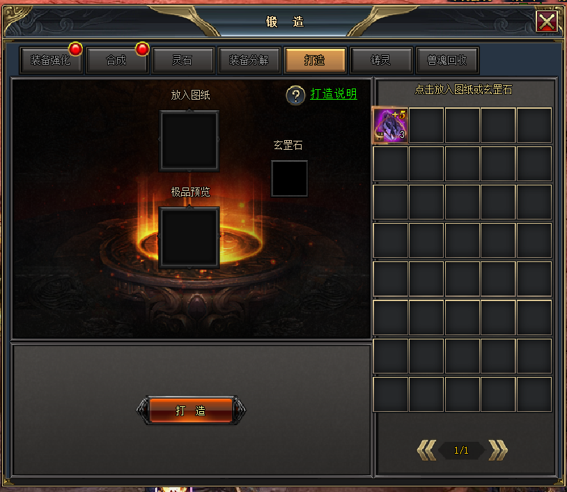 1.可通过兽魂图纸,打造兽魂装备。可添加玄罡石来保底兽魂装备的最低星级