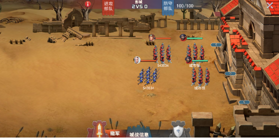 1.进入城战后,玩家只能在攻方、守方中选择一方派遣部队,每只部队必须由5名英雄组成