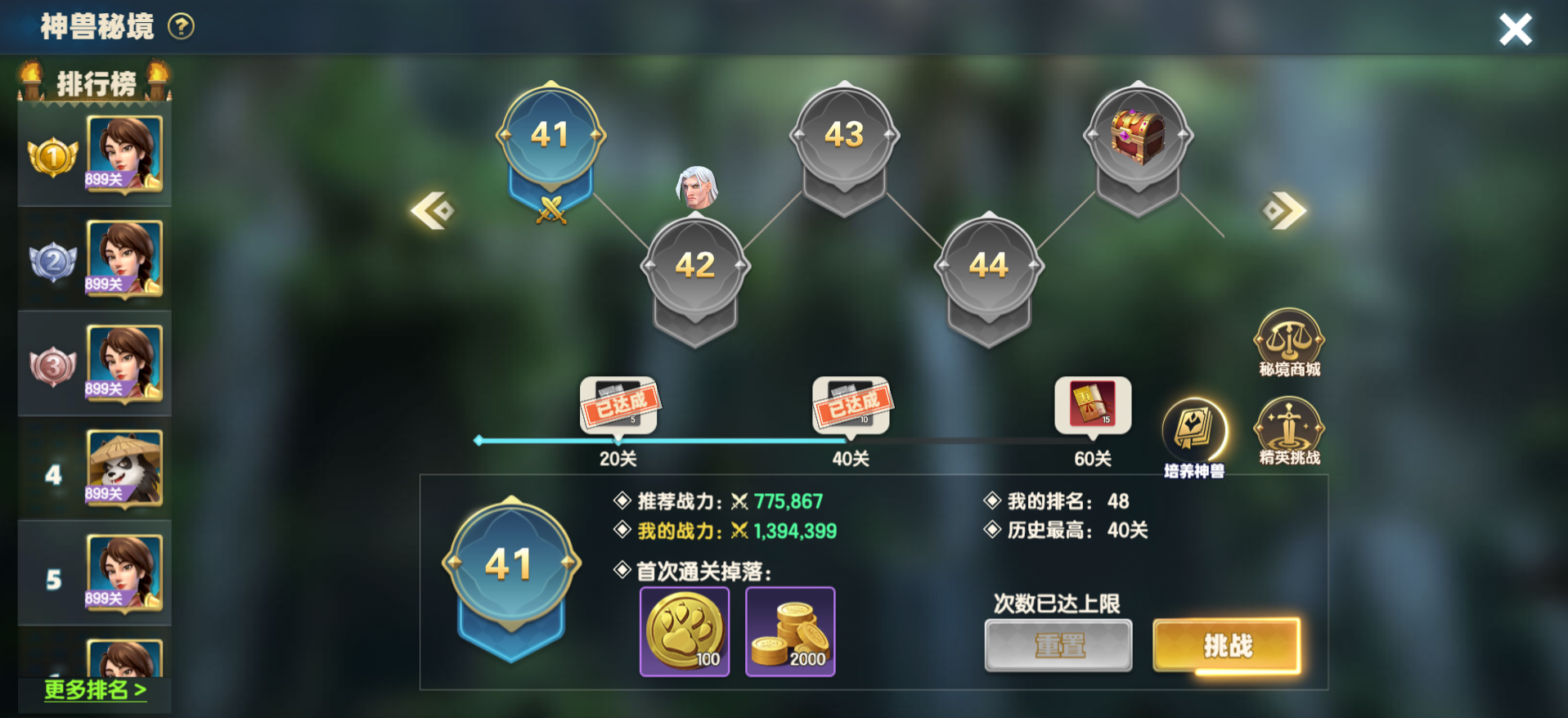 每日可重置一次可挑战关卡,重置后可以快速速通