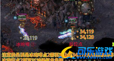 一.卡位打法首先我们需要3个角色,要是有技术的道士只要2个号,等Boss过来直接用狗卡位即可。1.进地图二层的34,119和34,120坐标站好两个卡位号;2.然后砸冰咆哮的法师去Boss刷新点把Boss引下来卡在人墙上;3.法师跑到Boss视野范围外对着人物角色砸冰咆哮,等砸几下后前面人墙的就可以开打了;法师砸冰咆哮有两个点:42,113~42,117或是26,1194.注意的是前面的人战力输出不能高过砸冰咆哮的人,也就是说要和打雷霆君主一样把魂珠宝石卸了,战力低于砸冰咆哮发生60%左右。5.然后就卡着打吧直到打死;